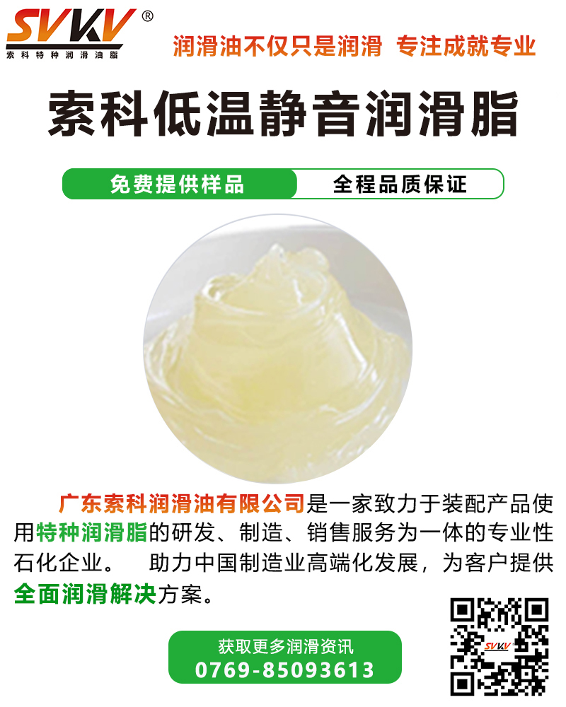 索科SVKV低溫靜音潤滑脂是采用低凝點(diǎn)的全合成潤滑油,并添加了強(qiáng)化低溫性能的添加劑制成。索科SVKV低溫靜音潤滑脂在野外嚴(yán)寒和實(shí)驗(yàn)室低溫環(huán)境下愛提供優(yōu)異的低溫泵送性,可承受零下60℃的超低溫正常啟動(dòng)和運(yùn)行扭矩,能有效幫助減少軸承摩擦損耗,起到潤滑、消音、密封、防凍、防銹和防腐蝕的效果。