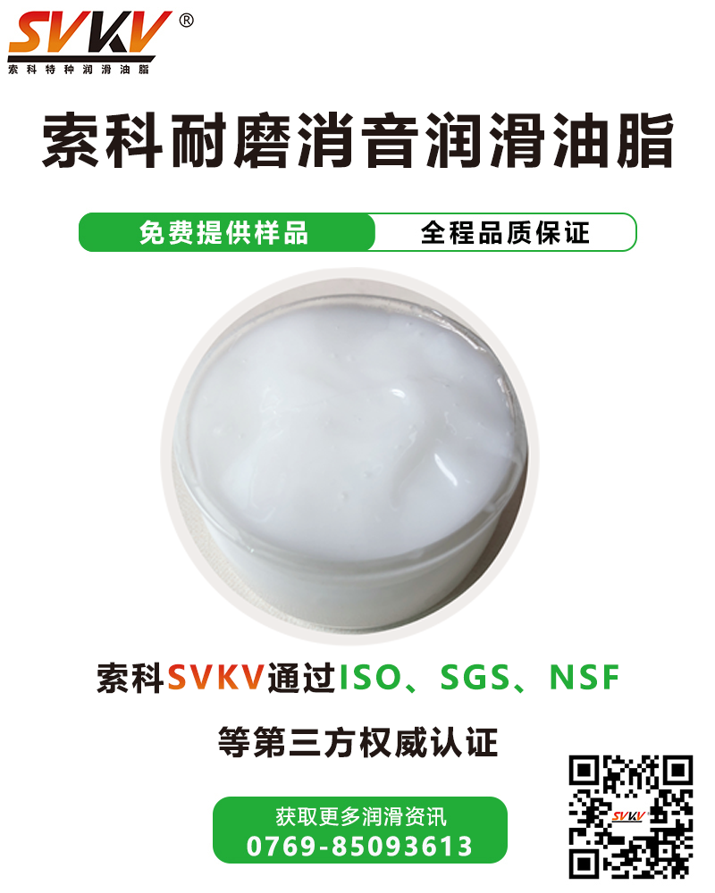 廣東索科潤(rùn)滑油有限公司是一家致力于裝配產(chǎn)品使用特種潤(rùn)滑脂的研發(fā)、生產(chǎn)、定制、服務(wù)為一體的專業(yè)性石化企業(yè)。致力為制造業(yè)客戶,提供專業(yè)的選油方案,協(xié)助客戶解決產(chǎn)品裝配時(shí)的潤(rùn)滑難題,還可根據(jù)客戶特殊需求訂做適合的潤(rùn)滑油品。有效提高產(chǎn)品性能、減低維護(hù)成本,索科助力制造業(yè)高端化發(fā)展! 主要產(chǎn)品有: 齒輪消音潤(rùn)滑脂|高溫潤(rùn)滑脂|食品級(jí)潤(rùn)滑脂|齒輪消音潤(rùn)滑脂|防水潤(rùn)滑脂 導(dǎo)電油脂|軸承油|硅油|干性皮膜潤(rùn)滑劑|低溫潤(rùn)滑脂|阻尼脂|全氟油脂